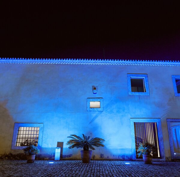 Edifício dos Paços do Concelho iluminado de azul para assinalar a data.
