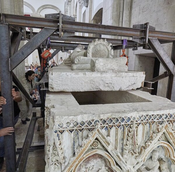 Operação de colocação da tampa da arca tumular do monarca realizou-se a 28 de junho, no Mosteiro de Odivelas.