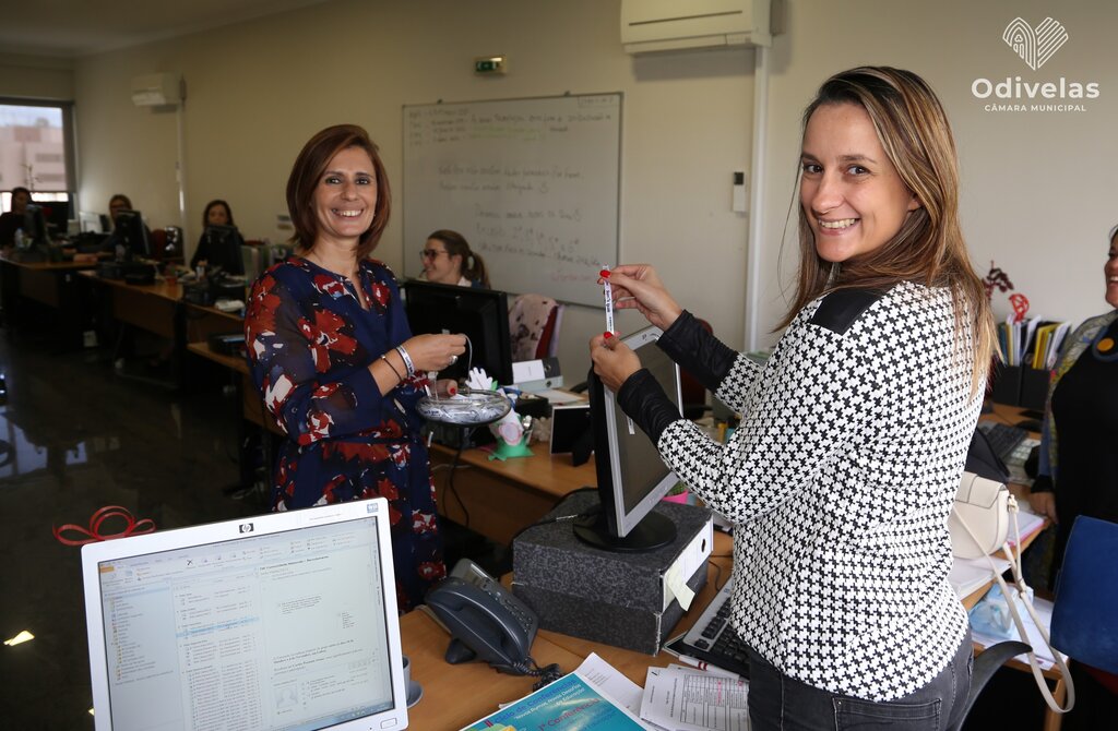 Durante o dia, a Vereadora da Coesão Social, Susana Santos, distribuiu pulseiras alusivas ao Dia pelos serviços da Autarquia, uma forma de envolver também os funcionários municipais nesta comemoração.