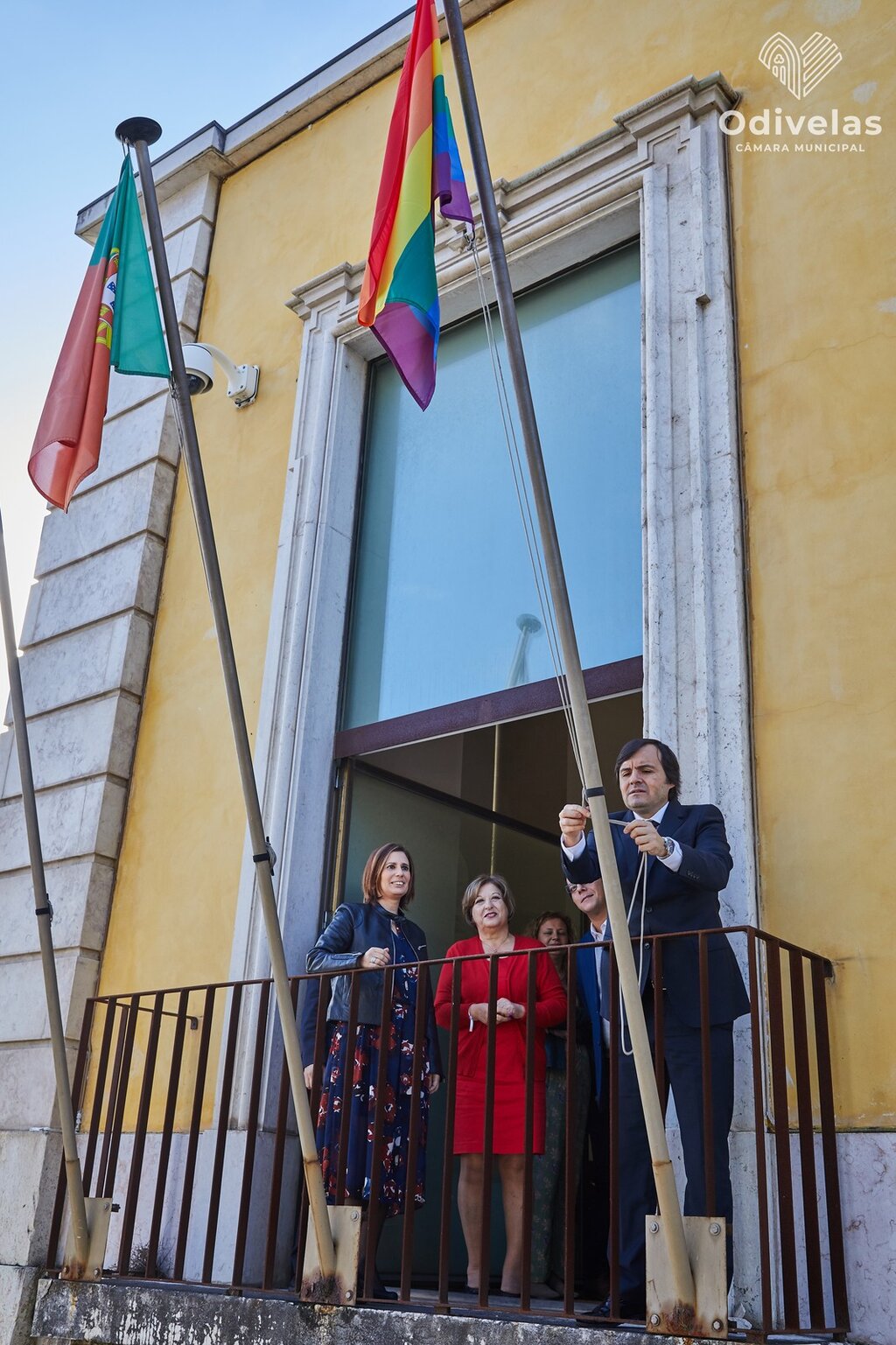 Ao início da manhã, o Presidente Hugo Martins hasteou a «Bandeira Arco-Íris» nos Paços do Concelho, acompanhado pelos Vereadores Susana Santos e João António, pelo Presidente da Junta de Freguesia de Odivelas, Nuno Gaudêncio, e pela Conselheira Municipal para a Igualdade, Hortênsia Mendes.